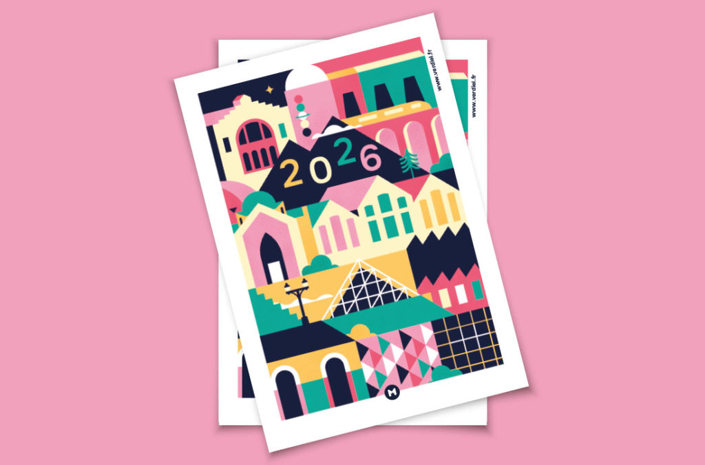 Création graphique pour une carte de voeux de l’agence pour 2026, travail graphique autour du patrimoine emblématique de Saint-Etienne